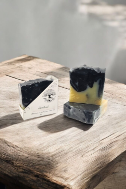 Immerse yourself in the calming aroma and luxurious feel of our Sandalwood soap bar, crafted to nourish, cleanse, and balance the skin. Made with a blend of organic shea butter, virgin olive oil, organic coconut oil, and jojoba oil, this bar provides intense hydration and leaves skin feeling soft and smooth. The inclusion of kaolin clay offers gentle purification, drawing out impurities without stripping the skin, while activated charcoal deeply cleanses, making it ideal for those seeking a fresh, balanced complexion.